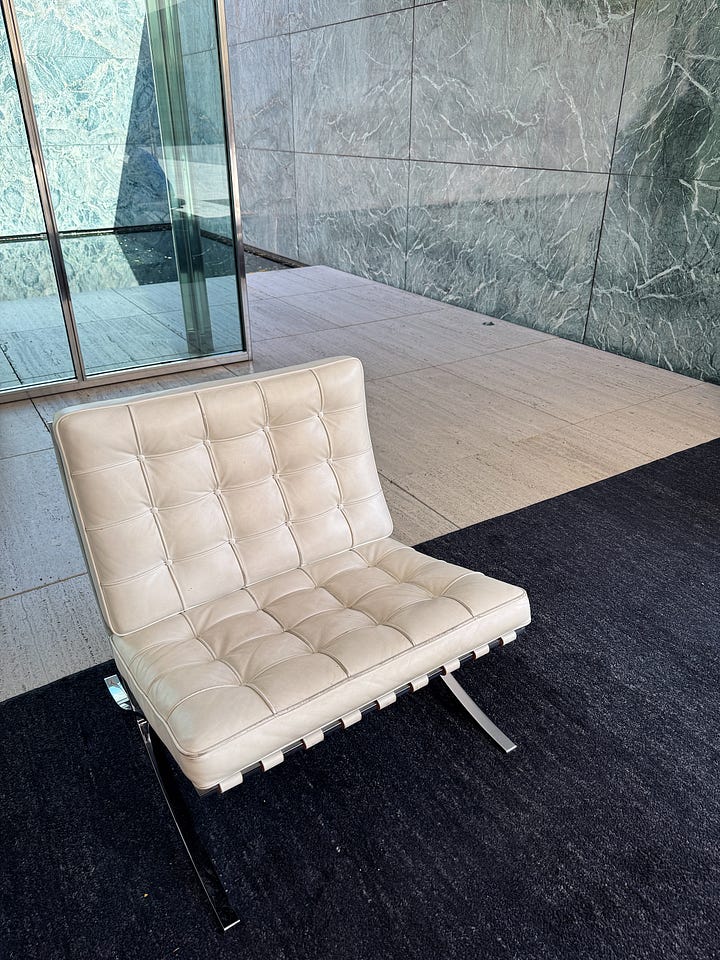 The Barcelona Chair is one of those rare objects that became bigger than the building it was designed for. Created by Mies van der Rohe and Lilly Reich specifically for the Pavilion in 1929, it was intended as a seat for Spanish royalty.. like a modernist throne. Inspired by ancient curule stools used by Roman magistrates, its form is both minimal and commanding. Steel legs, leather cushions, nothing unnecessary. But what’s wild is how it outlived its context: a piece of furniture from a temporary building that went on to define 20th-century design. You still see it everywhere today in design studios, corporate lobbies, minimalist homes. It is a kind of shorthand for taste, power, and modernity. It’s become a status object, sure, but it also speaks to the strength of a clear idea. Almost a century on, it still looks current.